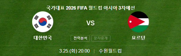 대한민국 vs. 요르단 경기(3월 25일 저녁 8시) 중계 및 실시간 시청 방법